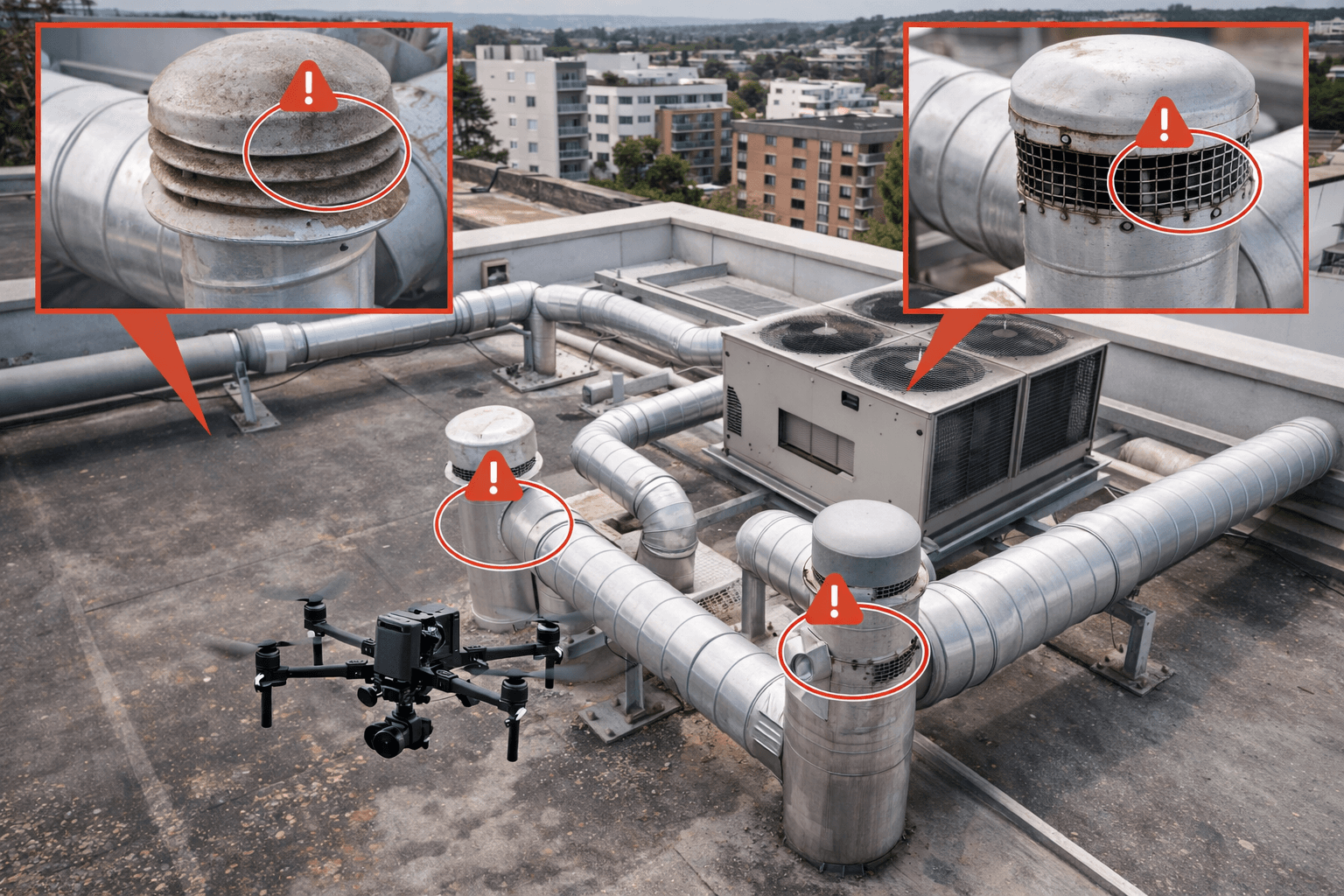 Inspection de conduits de ventilation et VMC en toiture par drone