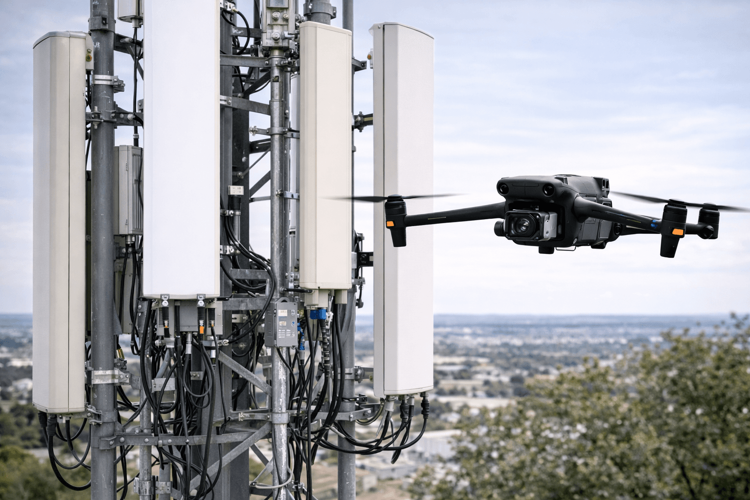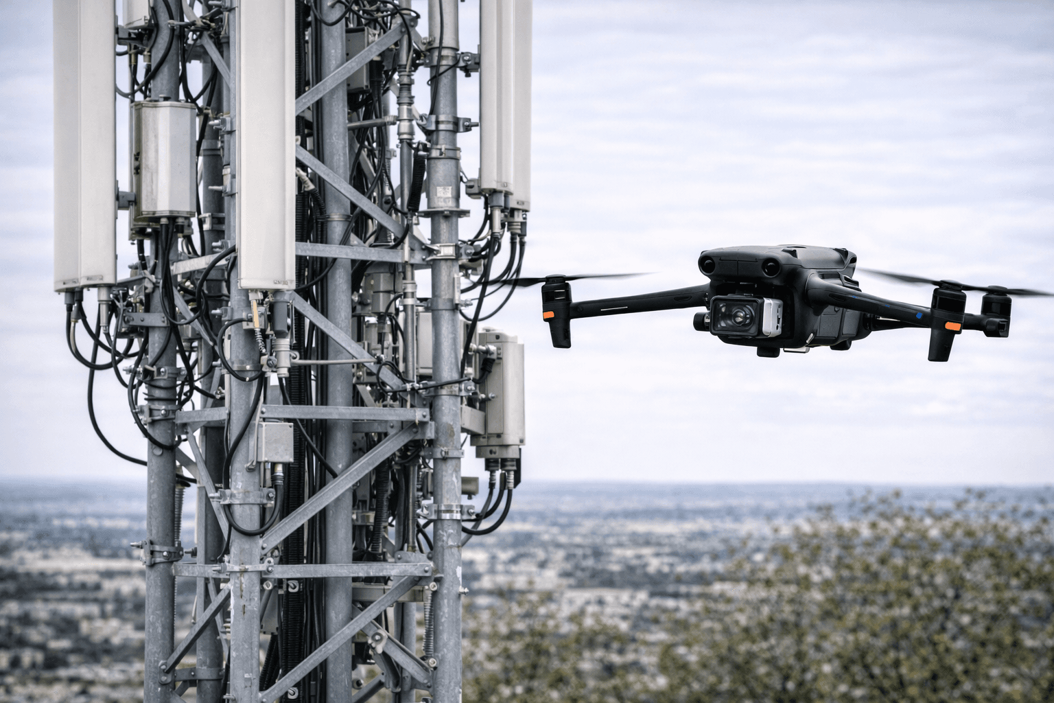Inspection d’antennes relais et pylônes télécom par drone (4G / 5G, maintenance)