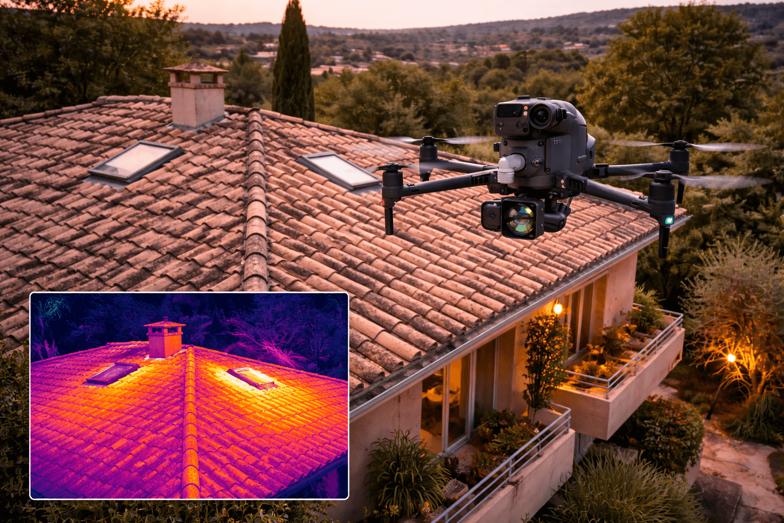 27 services disponibles : Analyse thermique, Infiltration toiture, Détection humidité.