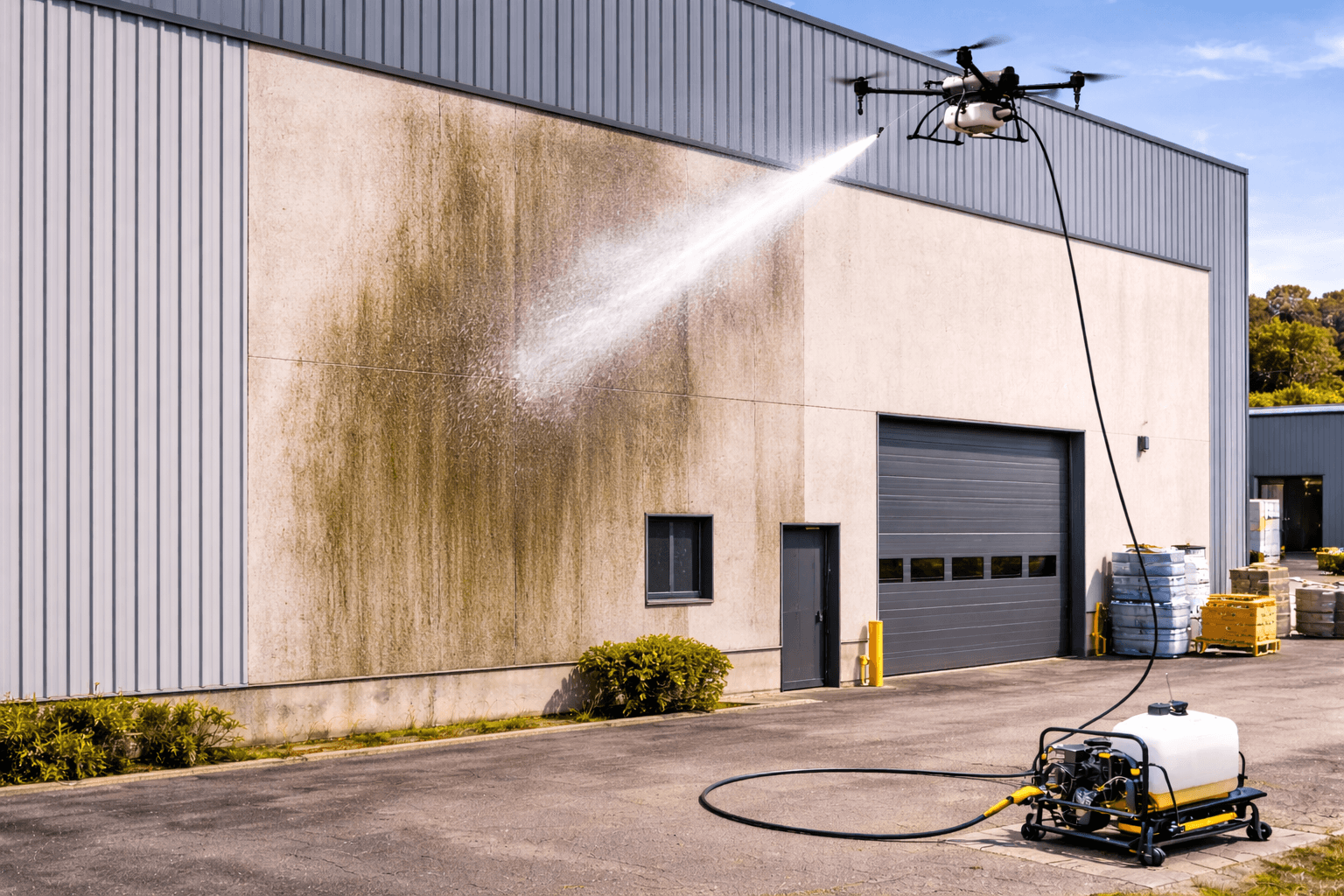 Nettoyage de façade industrielle et bardage par drone