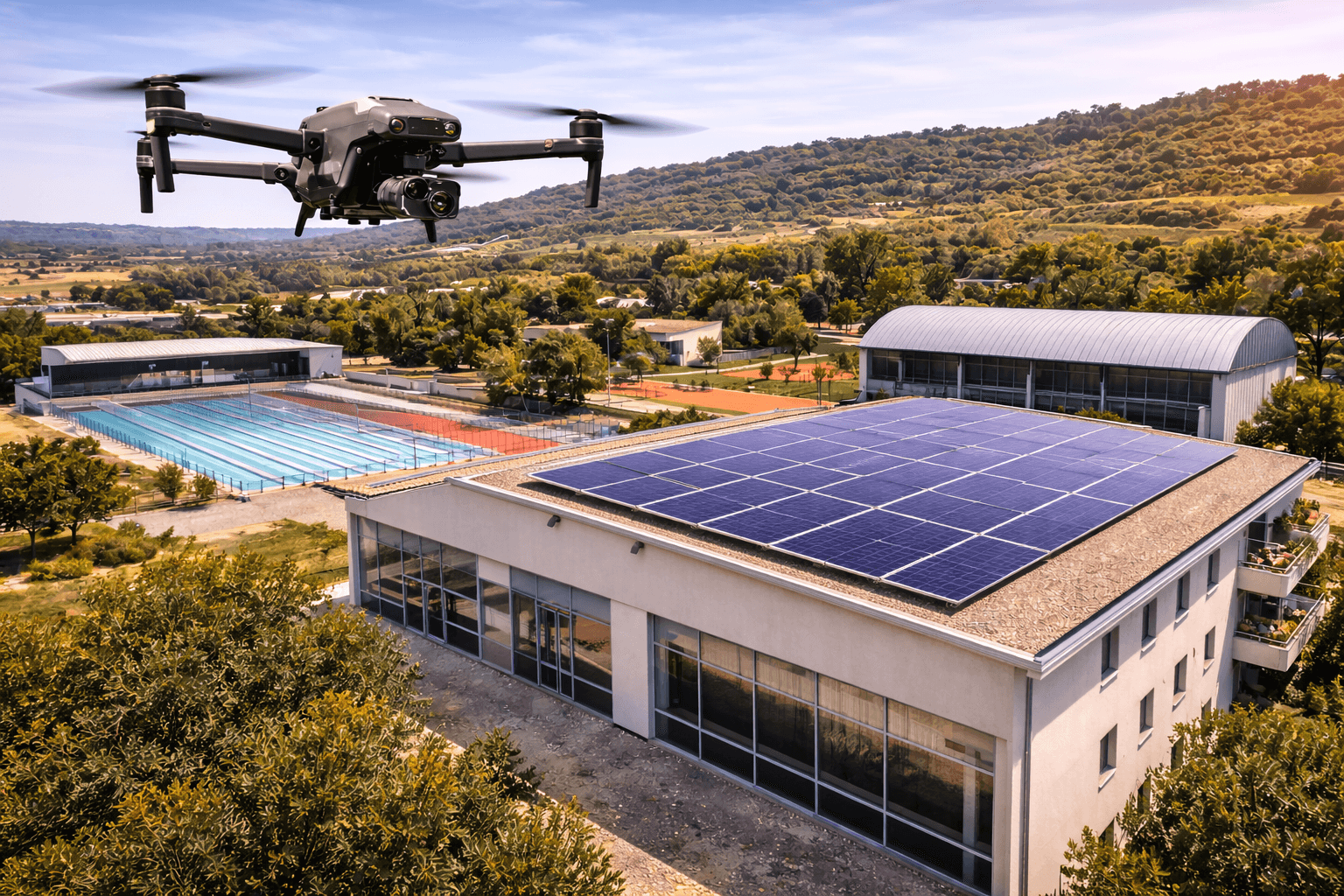 Les collectivités disposent de nombreux équipements publics comme des gymnases, piscines ou complexes sportifs dont les toitures sont souvent difficiles d'accès.