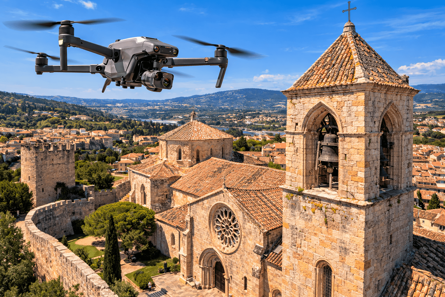 Les collectivités gèrent souvent un patrimoine historique ancien difficile d'accès. Inspecter les parties hautes d’églises, châteaux ou clochers nécessite habituellement échafaudage ou nacelle.