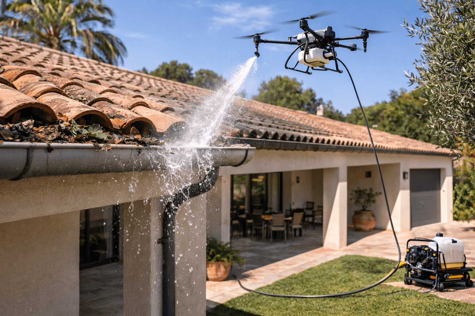 Nettoyage de gouttières maison et immeuble par drone